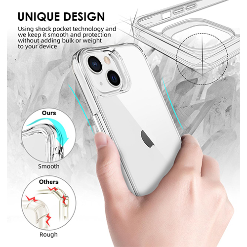 2).Vestibilità perfetta: la trama della macchina originale, la cover protettiva trasparente è perfettamente compatibile con la porta di ricarica e i pulsanti dell'iPhone13, e non pregiudica l'utilizzo del telefono.